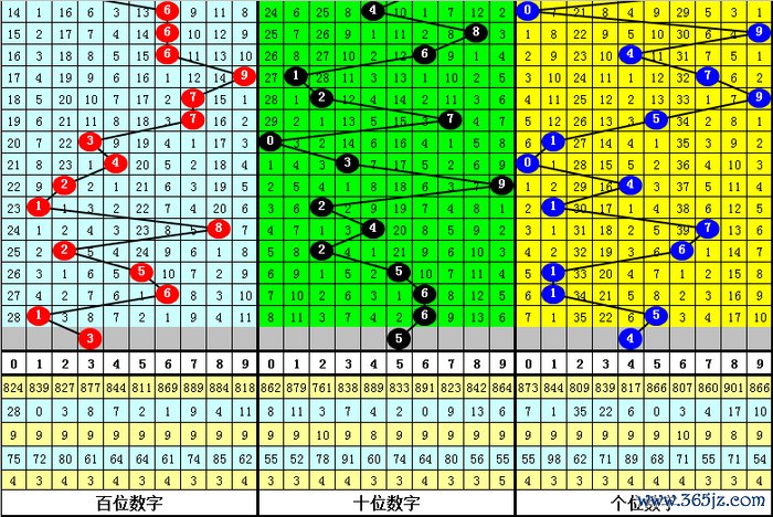 第三位冷码判断:上期开出奖号5,遗漏值为8期,现在该位最冷号码为2,遗漏值为35期,本期无间排斥。