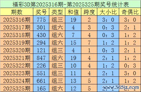 上期回来:福利彩票3D第2025325期开出奖号165。奖号类型:组六,大小风物:小大大,奇偶风物:奇偶奇。